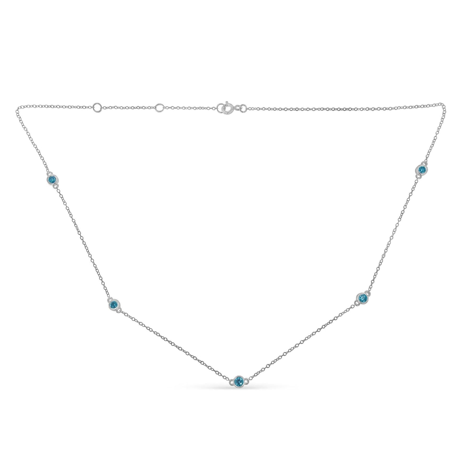 Add a touch of elegance to your outfit with this charming diamond yard necklace. Created in the finest 0.925 sterling silver, this piece is treated with 5 sparkling, round-cut diamonds in a bezel setting. The treated blue diamonds add a bit of uniqueness and color to any outfit. The total diamond weight is 0.50 ct, which makes it the perfect accessory for any event, casual or formal.