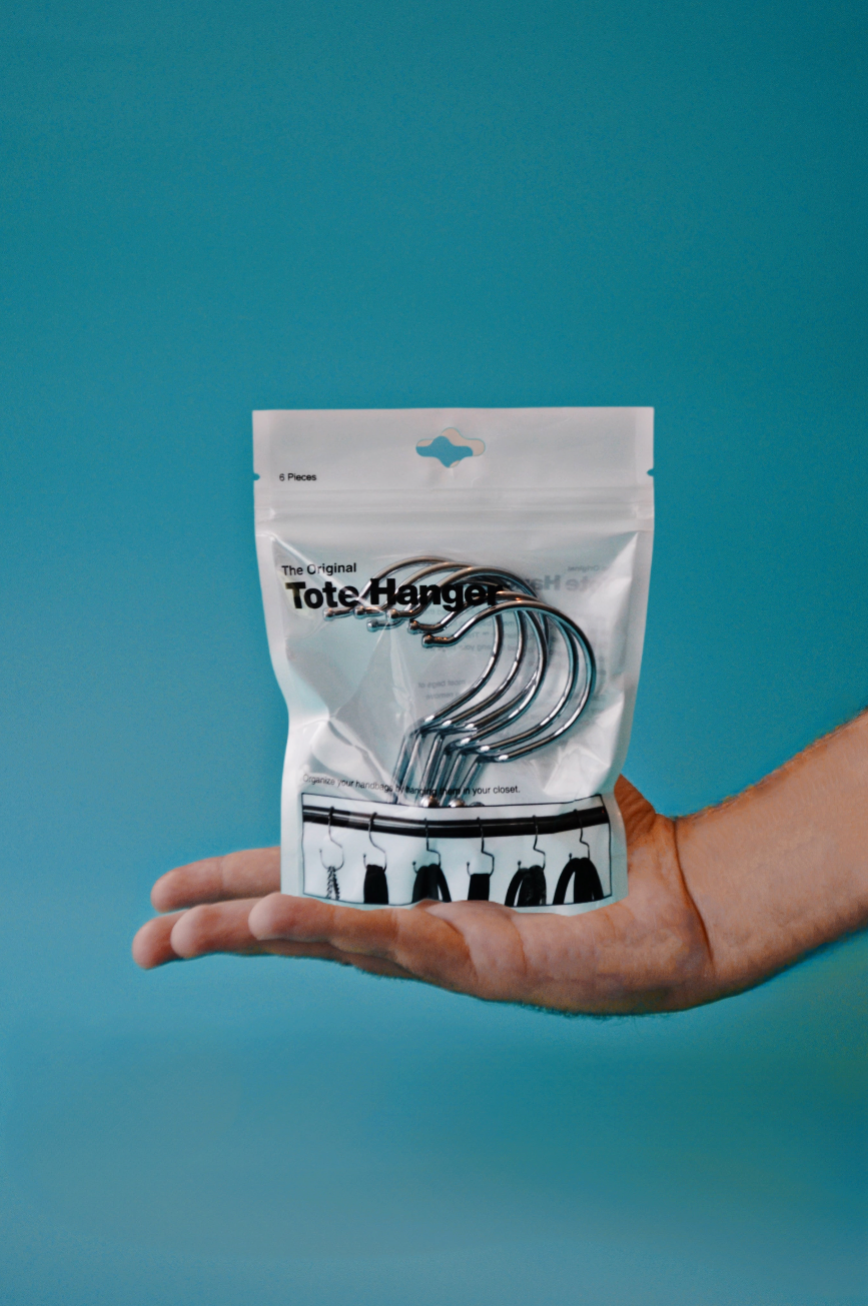 New York Handbag Designer Jacki Easlick had the same problem you do. So many bags, so little space. So she invented the Tote Hanger®. The premium hooks are engineered to hang your bags with elegance and balance.