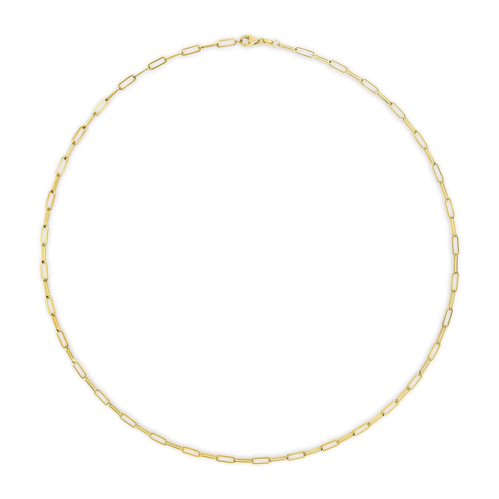 Unisex Solid 14K Gold 2.5mm Paperclip Chain Necklace