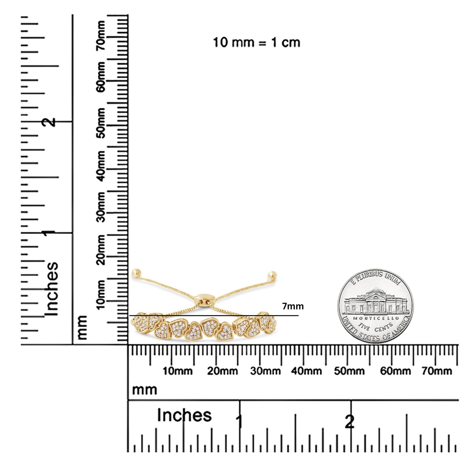 Yellow Gold Plated .925 Sterling Silver 1/2 Cttw Diamond Sideways Hearts Bolo Bracelet (H-I Color, I1-I2 Clarity) - 4”-10” Adjustable